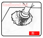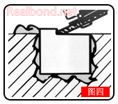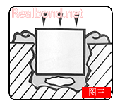 (4)孔洞内及金属块上都涂一层修补剂,然后将涂好修补剂的金属块镶入孔洞内(图三)。