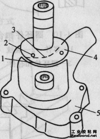 按尺寸做一补强板,然后将钢板与断裂件两部分相配合钻3~4个孔,以便能攻下沉头螺钉,作为机械加固、裂纹定位及固化加压作用(水泵壳形状不规则,热固化时胶液流动,难以定位、加压),固化时再加上水泵轴,以便达到同心。用胶接法修复水泵壳方法简便,质量可靠。