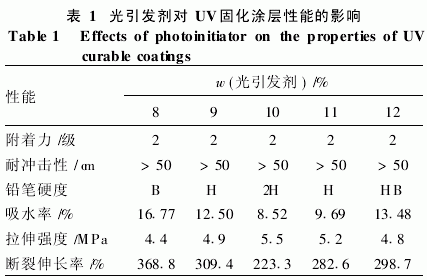 2·1·3 光引发剂对UV固化涂层性能的影响