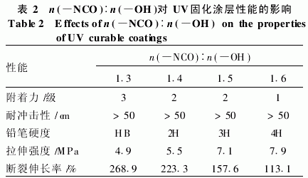 2·2·1 n(—NCO)∶n(—OH)对UV固化涂层性能的 影响